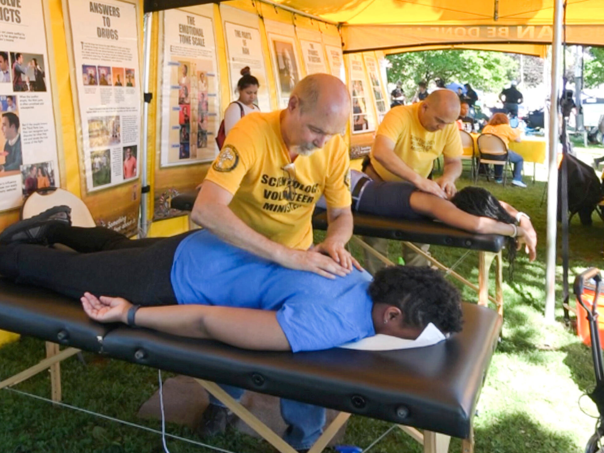 היועצים הרוחניים המתנדבים השתתפו בפסטיבל Good in the Hood במשך יותר מעשור. כל שנה, הם מקימים את האוהל הצהוב שלהם ועורכים סיורים לאנשים דרך לוחות התצוגה, ועוזרים להם לתכנן איך לשפר מצבים ולפתור את הבעיות בחייהם. השנה הם התמקדו במיוחד בנושא השימוש בסמים ובעיית ההומלסים.