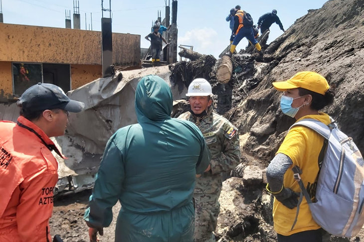 צוות המענה בשעת אסון של Scientology עוזר לקיטו בחפירות אחרי מפולת בוץ הרסנית