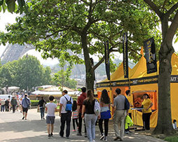 האוהלים הצהובים של היועצים הרוחניים המתנדבים הצרפתים מוקמים בכל רחבי פריז כדי לעזור לכולם.